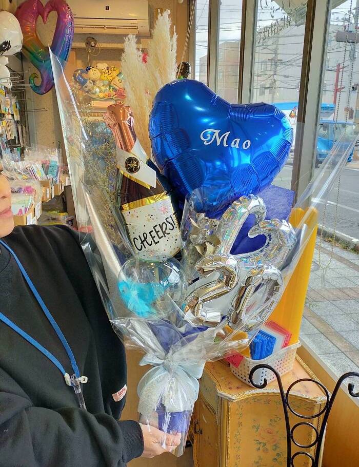 実際の商品を見ながら、スタッフにご要望を言っていただければ心のこもったオリジナルのステキなバルーンプレゼントになります
